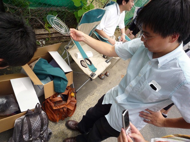 穴の空いた蒸し器をピンホールにすると (Photo by 味野)
