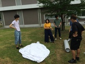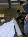風が強いので気球を回収 |