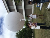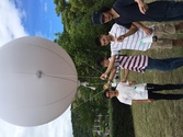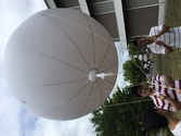 気球におんどとりの入った日よけをつけて |